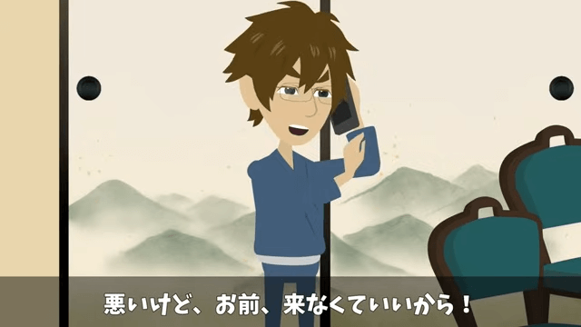 元同僚はほかのスタッフが勝手に行ったことに納得がいっていない様子でした。 しかし主人公はそれを気にせず「悪いけど、お前、来なくていいから!じゃ、あばよ!」と伝えて電話を切ろうとしました。