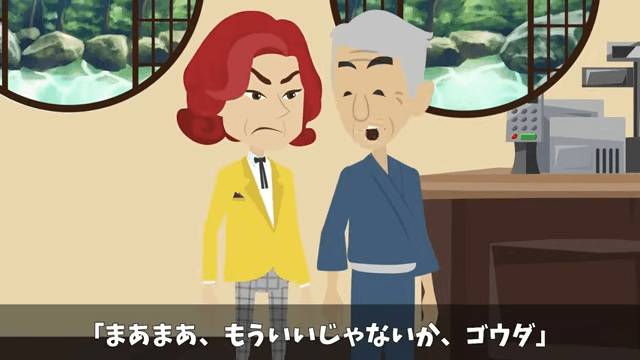 元同僚が主人公に土下座をしても、店主の怒りは収まりませんでした。 そこで父が「まあまあ、もういいじゃないか」と店主を落ち着かせます。