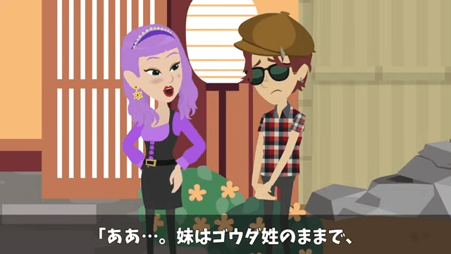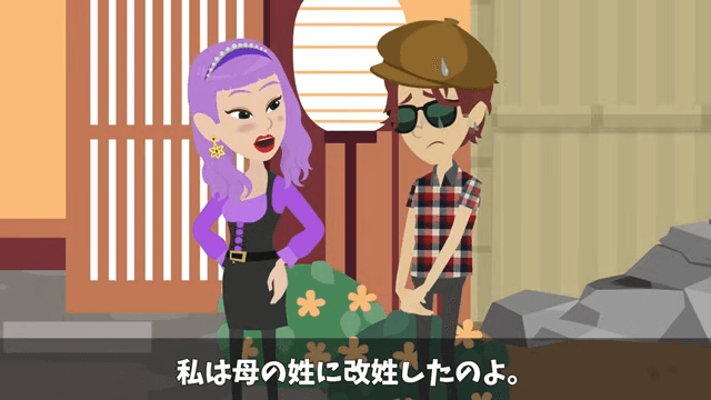 元カノに案内されてやってきたのがドタキャンした料亭だったため、驚きのあまりひっくり返りそうになった元同僚。 そこで元同僚は、元カノが店主と姓が違うことを指摘しました。