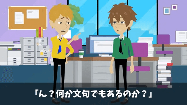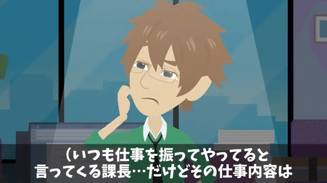 今回は『社員旅行の当日に上司から「旅行、本当は明日だから(笑)」とハブられた結果』を紹介します。 課長から資料の整理を頼まれた主人公は「あ、待って下さい!俺も自分の仕事で手一杯で…」と断ろうとします。 すると課長は「俺は優しさでお前に仕事を振ってやってるんだぞ?」と言いました。