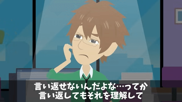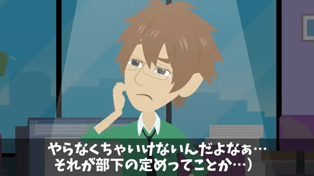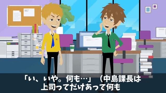 課長はいつも仕事を振ってやると言って主人公に雑務を押しつけてきます。 主人公は課長に言い返しても仕方がないとわかっていたため、言われたことに従っていました。
