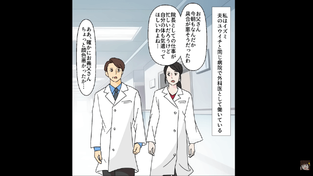 今回は『院長の座を私に奪われた夫「病院を退職する」⇒お望み通り離婚した結果』を紹介します。 夫と同じ病院で外科医として働く主人公は、院長を務めている父の体調不良を心配していました。 そんな中、主人公は夫と看護師が親しげにしている場面を見て、看護師がお金目当てで夫を狙っているということに気づいて…。