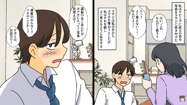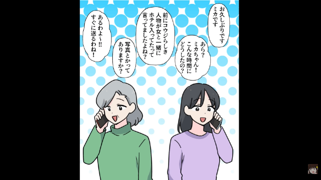 酔った夫の自分勝手な発言に我慢の限界だった主人公は、世話になっている女性に頼み、夫の浮気の証拠写真を手に入れました。 そして主人公が夫に浮気の証拠写真を見せると、酔っ払った夫は素直に浮気相手の名前を口にしたのです。