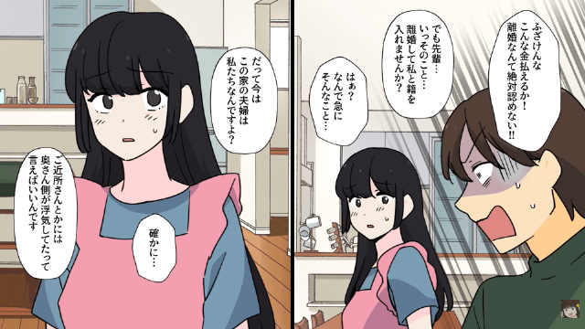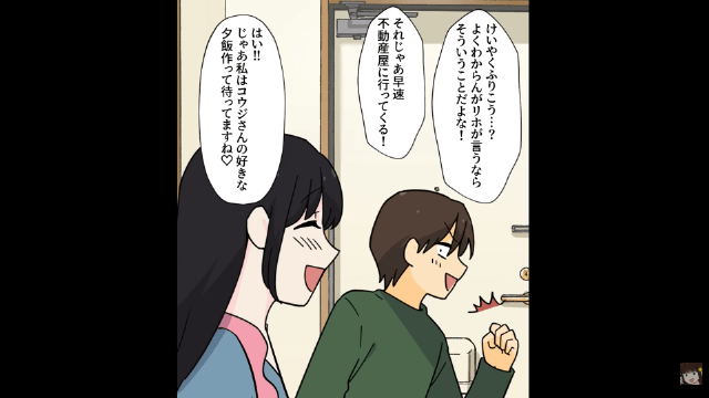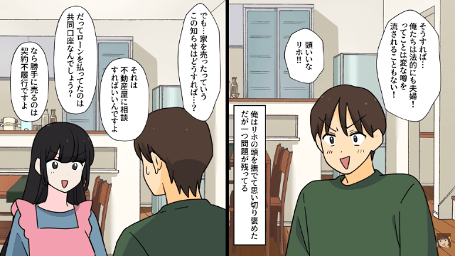 主人公からの慰謝料請求に夫が激怒していると、浮気相手は夫と自分の再婚を提案しました。 さらに浮気相手が家を勝手に売るのは契約不履行だと主張したため、夫は家を取り返すため意気揚々と不動産屋へと向かったのですが…。