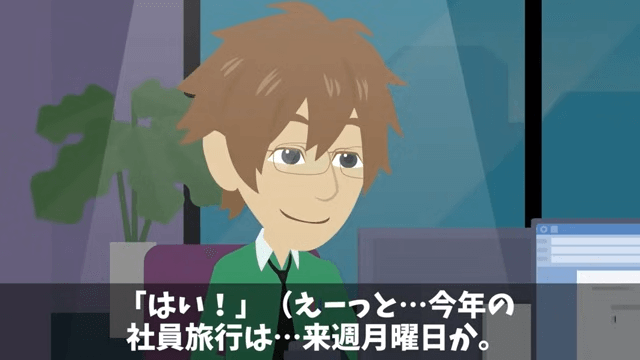 今回は『社員旅行の当日に上司から「旅行、本当は明日だから(笑)」とハブられた結果』を紹介します。 課長は高卒の主人公が部長に褒められることが気に食わないようです。 そのため、いつも主人公が仕事に集中できないよう雑務を押しつけて邪魔をしてくるのでした。