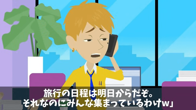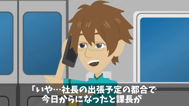 主人公は社長の出張の都合で、社員旅行が今日からになったことを伝えます。 それを聞いた課長は「は…?いやいや、そんなバカな…」と慌て始めて…。