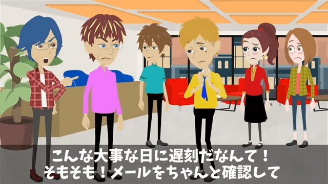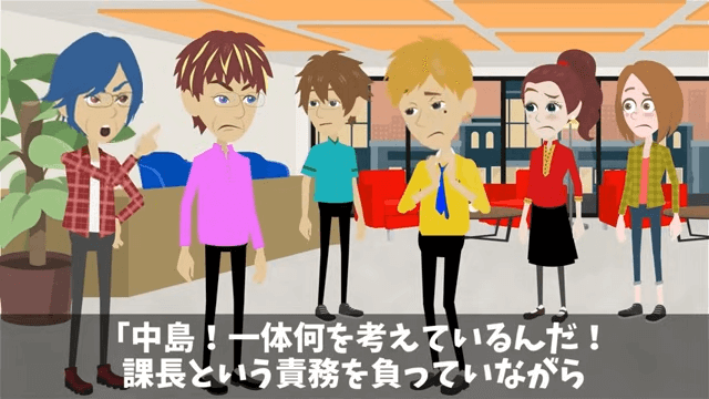 課長はみんなの前で、どういう経緯で遅くなったのかを説明しました。 すると部長が「課長という責務を負っていながら、こんな大事な日に遅刻だなんて!」と怒り…。