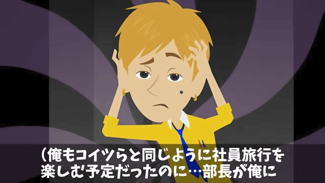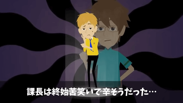 社員旅行が再スタートし、主人公たちは宴会を楽しみました。 しかし部長に圧をかけられた課長は、まったく楽しむことができず…。