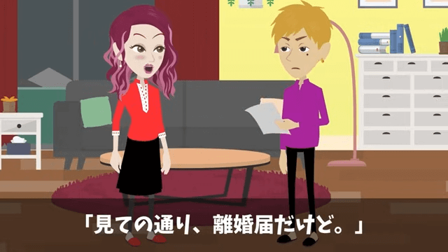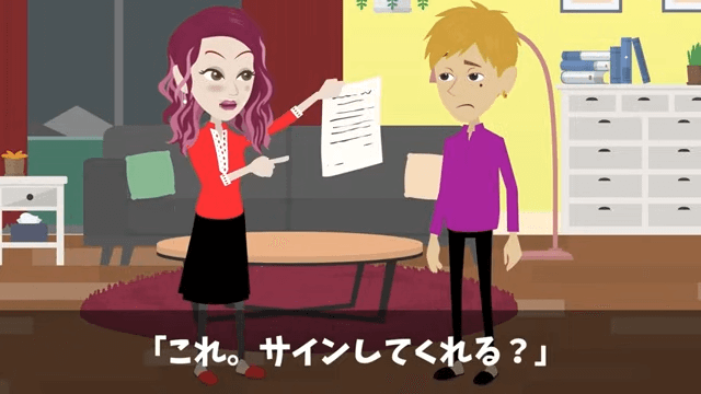 課長は降格が決まった上、田舎の支社への左遷を命じられました。 そして課長がそのことを課長の妻に報告すると、課長の妻は課長に離婚届を突きつけたのです。