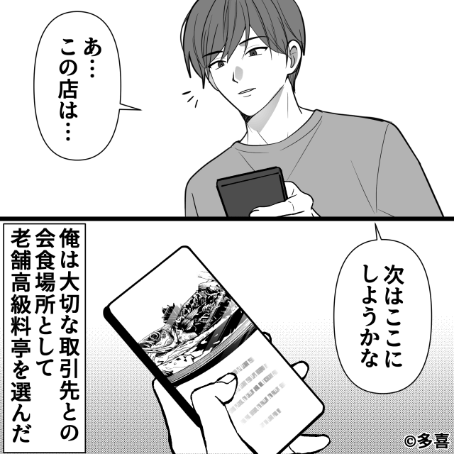 今回は『“高卒の上司”をナメた新人の末路』を紹介します。 会食の場所として、老舗高級料亭を選んだ主人公。 当日、会食は大成功で、会計をすると…。