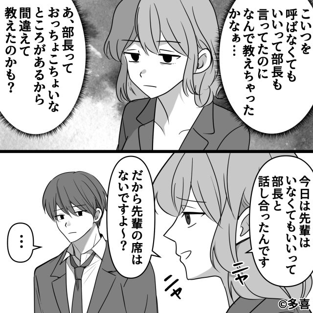 今回は『“高卒の上司”をナメた新人の末路』を紹介します。 主人公を見下し、会食に呼ばなくていいと部長に言い放った後輩。 部長に「彼は必要だよ」と言われたにもかかわらず、後輩は主人公の分の予約をせず…。