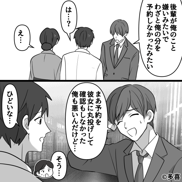 今回は『“高卒の上司”をナメた新人の末路』を紹介します。 「先輩の席はないですよ〜?」とニヤニヤと笑い、イヤミを言う後輩。 後輩からの露骨な嫌がらせに、主人公は呆れてしまうのでした。