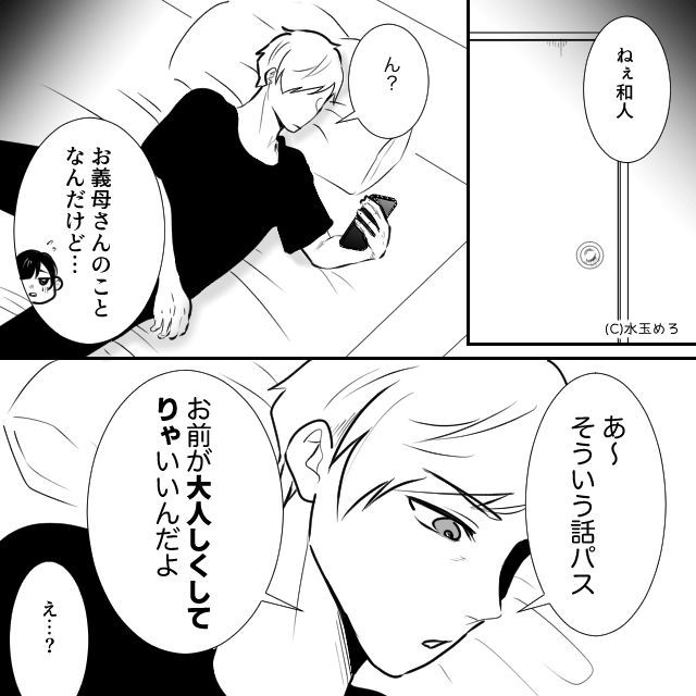 夫に相談をするも、夫は「お前が大人しくしてりゃいいんだよ」と味方になってくれず…。