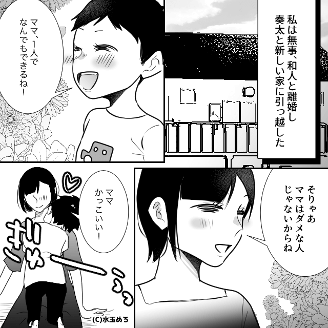 その後、主人公は夫と離婚し、息子と2人で幸せに暮らしたのでした。