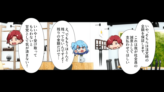 同級生に激怒した後、主人公の店までやってきた社長は「本当に申し訳ございません!」と頭を下げました。 そして社長は主人公に、注文時の全額を支払うと言ってくれたのです。