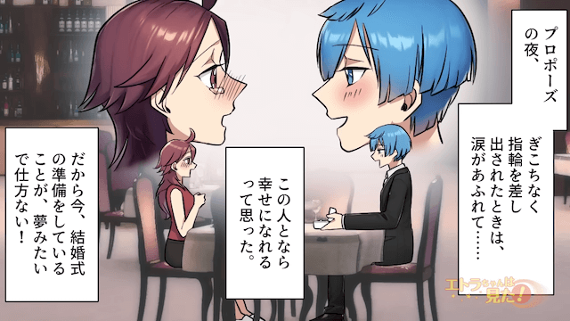 学生時代からずっと憧れていた結婚式をすることになり、幸せいっぱいの主人公。 気に入ったドレスを婚約者に見せると、婚約者は「似合ってる!それにしようか」と賛成してくれて…。