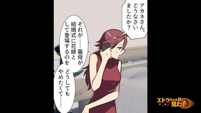 今回は『結婚式に現れた義母の格好に絶句した話』を紹介します。 主人公が婚約者に抗議するも、婚約者はまったく主人公の気持ちを考えてくれません。 埒が明かないと判断した主人公は、プランナーに相談するために電話をかけたのでした。