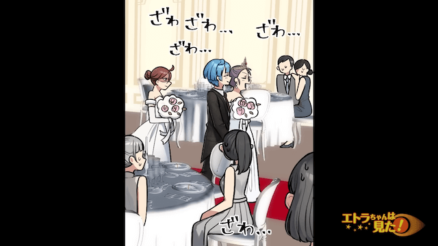 「どんな決断をしても私たちはあなたの味方よ」と両親に言われ、涙を流す主人公。 そして結婚式当日、婚約者は義母と入場し、主人公は後ろからついていく形になりました。