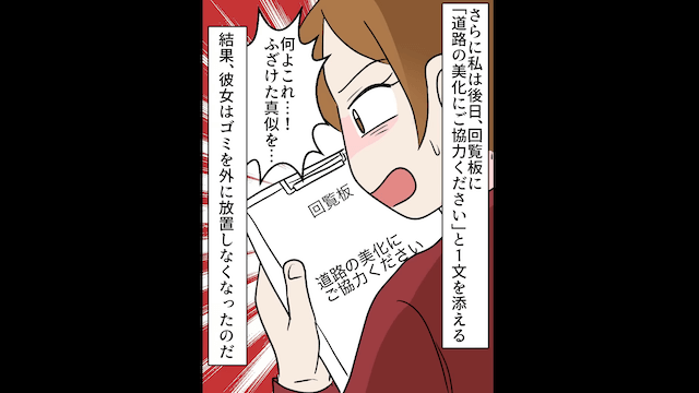 料理や家事に文句をつけてくる息子夫婦にうんざりするも、我慢していた主人公。 そんなある日、嫁が家の前にゴミ袋を放置し「ゴミなんて知りません」とシラを切ったのです。