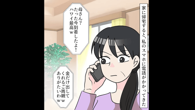 今回は『私たちが計画したハワイ旅行へ行った息子夫婦の末路』を紹介します。 旅行当日、主人公夫婦が計画した旅行を乗っ取った息子夫婦。 主人公は落ち込みますが、夫と一緒に出かけて少し元気を取り戻したのでした。