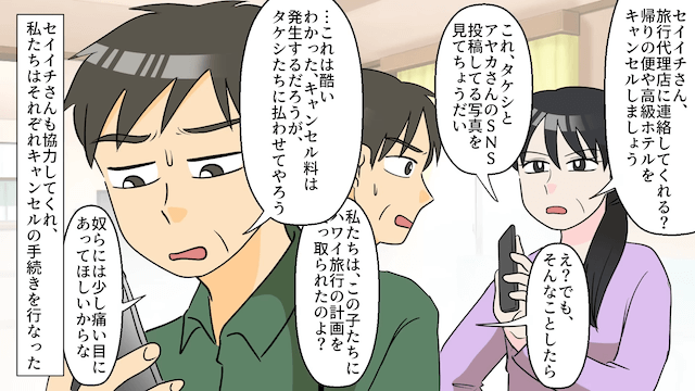 今回は『私たちが計画したハワイ旅行へ行った息子夫婦の末路』を紹介します。 旅行当日、主人公夫婦が計画した旅行を乗っ取った息子夫婦。 主人公は落ち込みますが、夫と一緒に出かけて少し元気を取り戻したのでした。