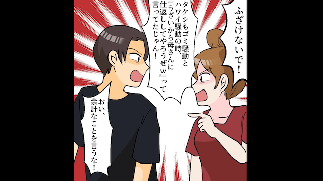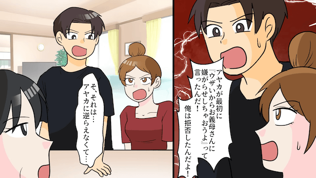 夫が息子夫婦を家からつまみ出した翌日、SNSアカウントを消して「訴えないでほしいんだ」と言ってきた息子夫婦。 しかし主人公が突き放すと、息子はすべての責任を嫁に押しつけ、2人はケンカを始めました。