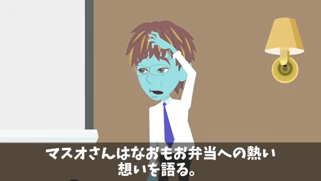 頭取は主人公の弁当を食べるのが本当に楽しみだと話します。 それを聞いた支店長はどんどん顔が青くなっていきました。