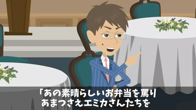 弁当を馬鹿にされた頭取は、激しく支店長を責め立てました。 すると幼なじみが、支店長が脅しのような態度で弁当をキャンセルしたことを暴露し始めて…。