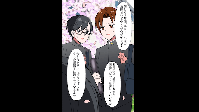 そして卒業式当日、式が終わると息子は友人たちに偉そうな態度をとっていて…。