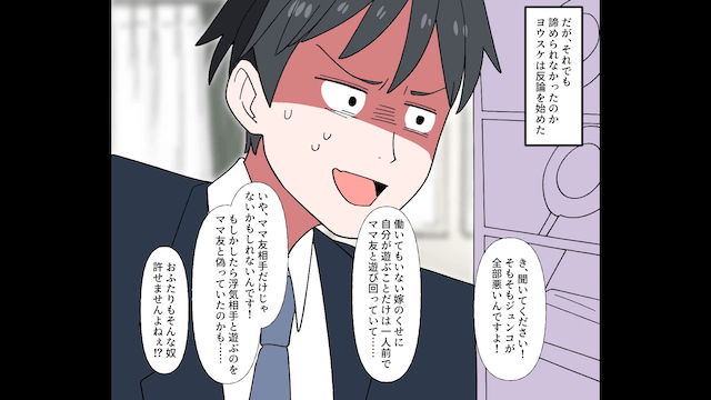 今回は『夫「家族失格だぞ!?」妻「私に家族は居ませんが?」家族に嫌われ続けた妻の逆襲の話』を紹介します。 ママ友の家族の圧に押され、みじめなほどに縮こまる夫。 そんな夫を見て、主人公は「本当に情けない人」と呆れるのでした。