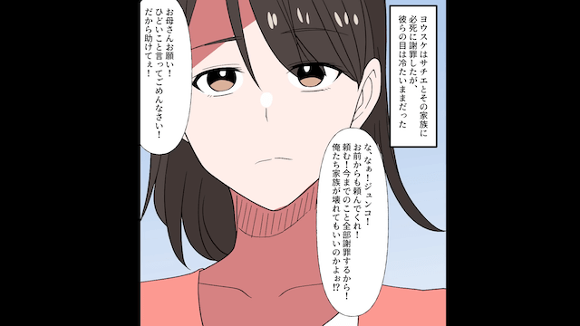 今回は『夫「家族失格だぞ!?」妻「私に家族は居ませんが?」家族に嫌われ続けた妻の逆襲の話』を紹介します。 ママ友の義父と夫が、実は息子が入学する高校の理事長と副理事長だと判明。 息子はママ友の義父に入学取り消しを告げられ、夫は必死に謝罪するのでした。