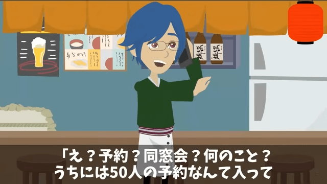 今回は『同級生「同窓会はキャンセルで(笑)」俺「え?何の話?」⇒勘違いしていた同級生の話』を紹介します。 同級生は主人公の店に大口予約をして、ドタキャンすることを考えます。 そして当日、同級生は「実は今日の50人の予約なんだけど、急に行けなくなったんだわ」と主人公に伝えました。