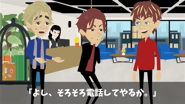 同級生たちは、主人公への嫌がらせの内容について確認します。 そして同級生が「よし、そろそろ電話してやるか」と言いました。
