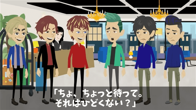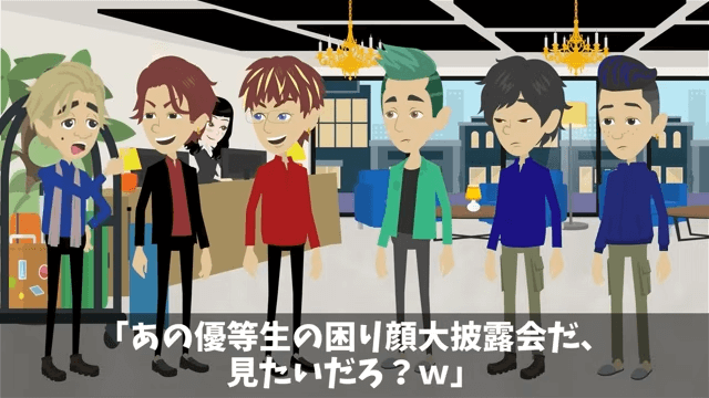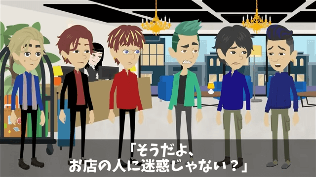 同級生は「さあ皆、集まった集まった」とほかの同級生たちに声をかけました。 そして集まってきた同級生たちに、主人公の店にしていた予約をドタキャンすることを説明します。