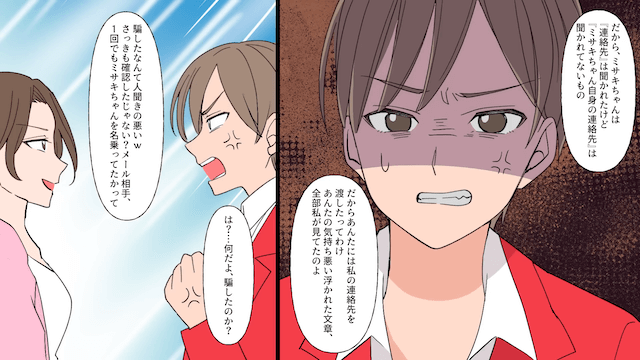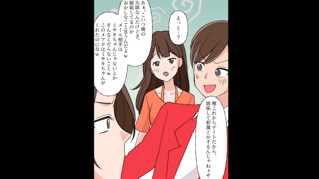 主人公の作戦通り、友人の娘は主人公のメールアドレスを元夫に渡し、主人公は元夫とデートの約束を取りつけます。 そしてデート当日、すべてを知った元夫は「だましたのか?」と激怒して…。