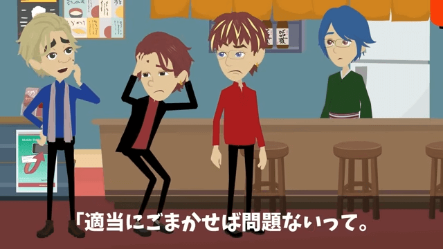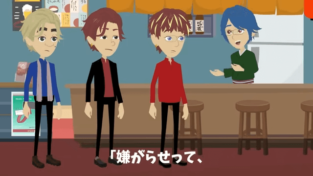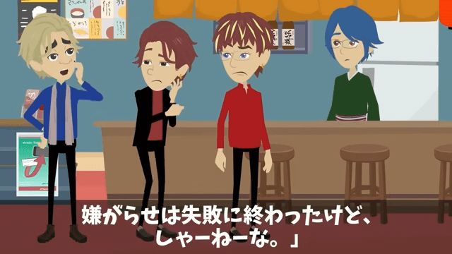 予約の間違いに気づいた同級生が慌て始めると、ほかの同級生が「適当にごまかせば問題ないって」と言いました。 そして「嫌がらせは失敗に終わったけど、しゃーねーな」と言うと、主人公は「嫌がらせって、やっぱり…」と言い…。