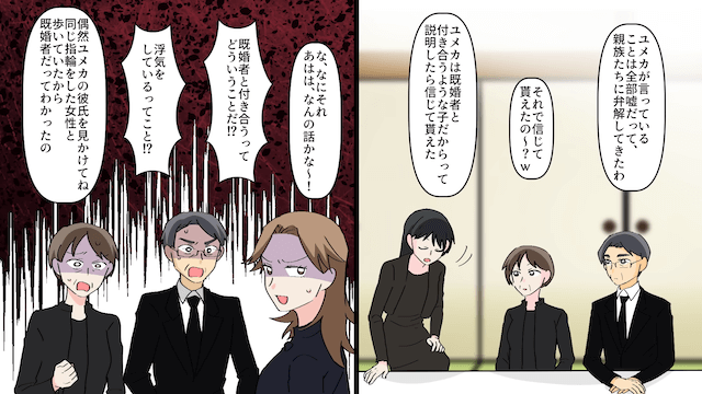 しかし主人公は反撃として妹が既婚者と交際していることを暴露し、自分の噂を弁解したのでした。