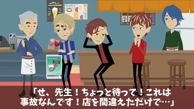 店主が「さて、どうしてもらいましょうかね」と言うと、同級生たちは慌て始めます。 そして同級生は「これは事故なんです!店を間違えただけで…」と言い訳をしました。