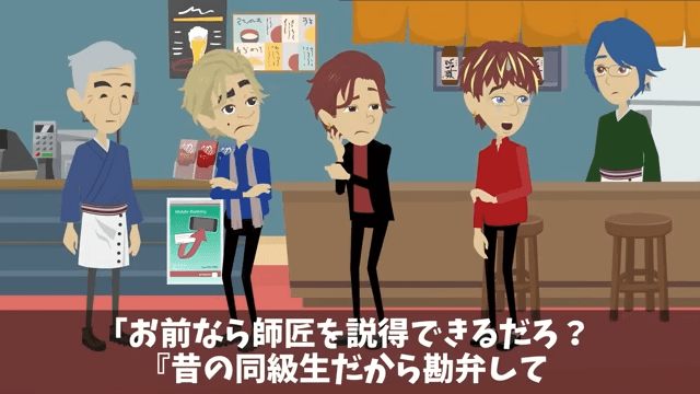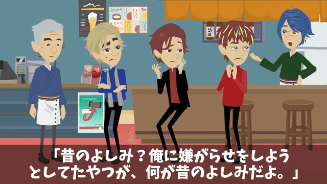 同級生たちは昔のよしみで店主を説得してほしいと主人公に頼んできました。 しかし主人公は「昔のよしみ?俺に嫌がらせをしようとしてたやつが、何が昔のよしみだよ」と言い…。