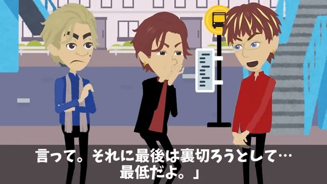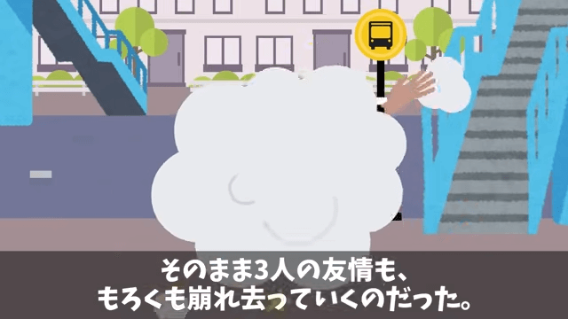 同級生たちは「ご、ごめんなさい…」と謝ると、店の外で途方に暮れました。 しかしすぐに言い争いが始まり、同級生たちの友情はもろくも崩れ去ってしまったのです。