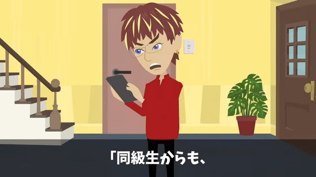 同級生の1人は母親から怒られ、家を追い出されることになりました。 そしてもう1人の同級生は、主人公に敵わないことに腹を立てており…。