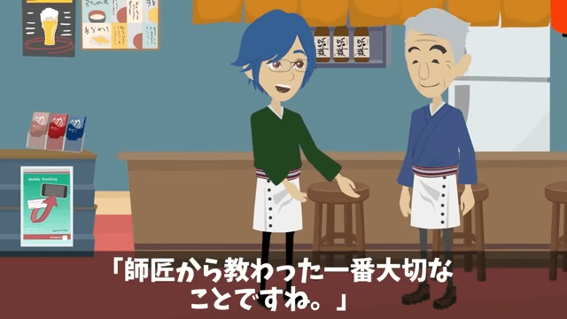 今回は『同級生「同窓会はキャンセルで(笑)」俺「え?何の話?」⇒勘違いしていた同級生の話』を紹介します。 1人の客が店の雰囲気を褒め「また来ます」と主人公に伝えて店を出ていきました。 それを見ていた店主が「よかったな」と言うと、主人公は「師匠のおかげです。それにいい仲間にも恵まれましたし」と言い…。