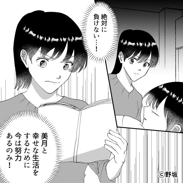 悩んだ主人公が友人に相談をすると、友人の夫が弁護士だということが判明し、協力してくれることに。 主人公は娘と幸せな生活を送るために「絶対に負けない…!」と決意するのでした。