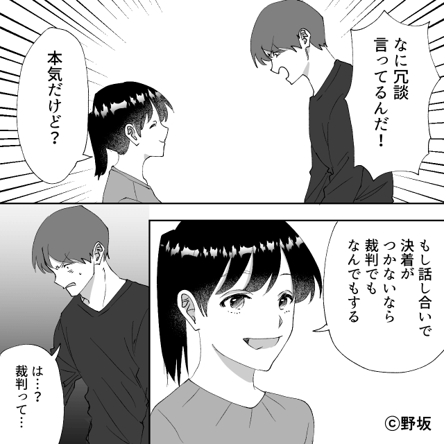 今回は『夫が「なにかあったら俺が責任取る」というので義母と同居した結果』を紹介します。 夫に離婚を突きつけ、親権と養育費、慰謝料を請求することを伝えた主人公。 すると夫と義母は唖然として…。