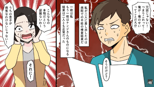 主人公は元夫と元義母の暮らす家を訪ねると、間取りの確認をするふりをして夫の求めている書類を探すことに。 そして必要な書類を手に入れた主人公は、自分のお腹にいる子どもが夫との間にできた子どもであることを示す書類を元夫と元義母に見せつけたのです。