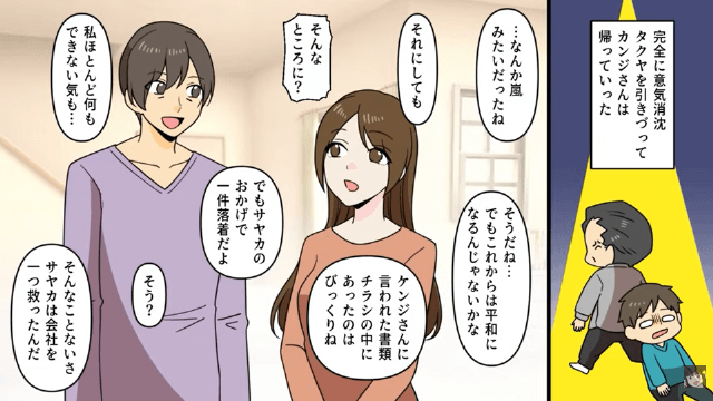 今回は『元夫「お前には俺しかいないだろ(笑)再婚してやる(笑)」勘違いした元夫の末路』を紹介します。 元義父は経営が悪化した自分の会社を大企業の社長である夫に買収してもらおうと思っており、そのことを副社長である元夫には何も相談していませんでした。 するとそのとき、夫は元夫が横領していたことを指摘し、買収の話を断ろうとしたのです。 それを聞いて焦った元義父は、元夫の解雇と、元義母との離婚を宣言して…。