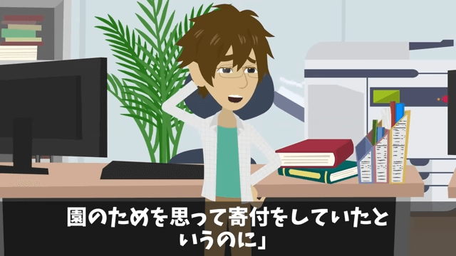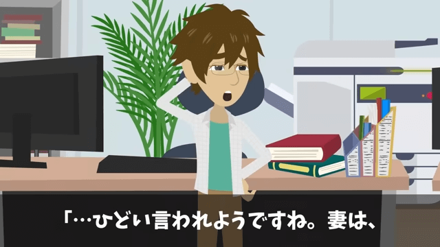 園長や先生たちは、口々に主人公の妻に対する不満を漏らしました。 それを聞いた主人公は「…ひどい言われようですね」と表情を曇らせます。