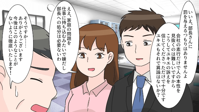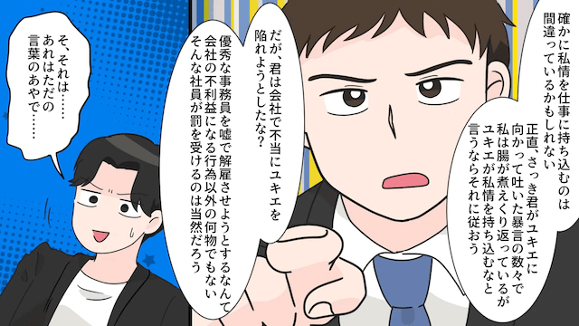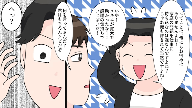 そして夫の主人公への暴言に激怒した幹部は、夫のクビは決定事項だと言ったのでした。