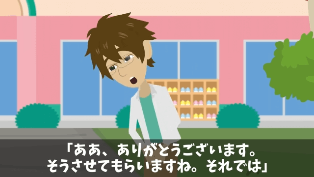 主人公に声をかけた保護者は、主人公が園長と一緒にいることに気がつき「あれ?園長先生とお取り込み中でした?」と尋ねました。 すると園長が「な、なんでもありませんよっ」とごまかし、主人公を保護者のもとに行かせたのです。