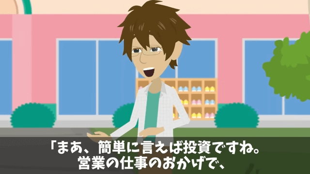 先生は「ちょっと給料が増えたところで、片親で生活が苦しいことには変わりないでしょ」と言います。 そこで主人公は、自由に使える時間で投資を始めたことを話し始めました。